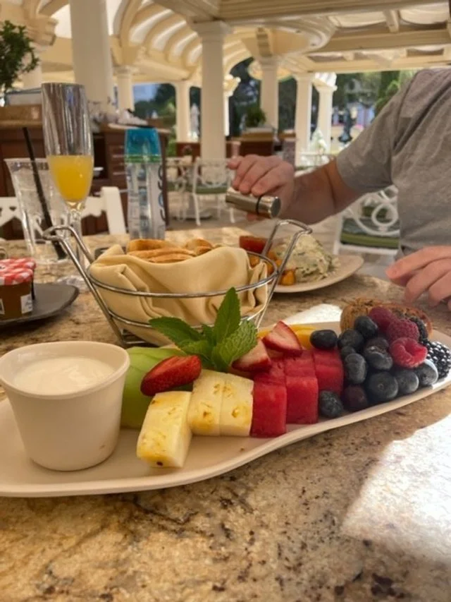 A relaxing and healthy breakfast poolside